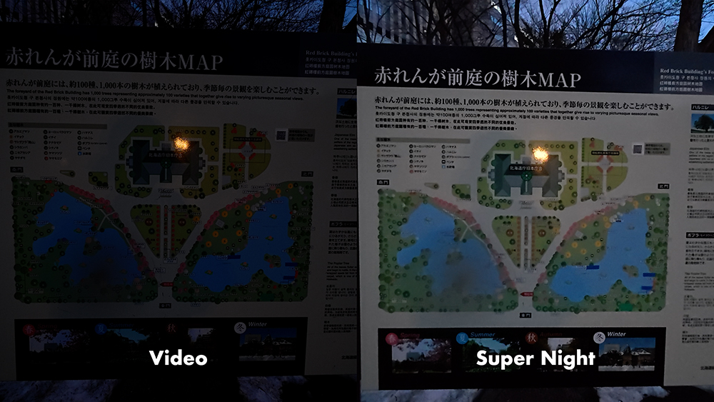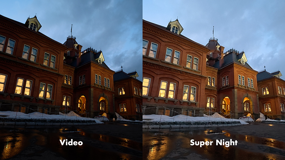 スーパーナイトモードを選べば、暗い場所でも明るくてノイズが少ない映像が撮れます。
